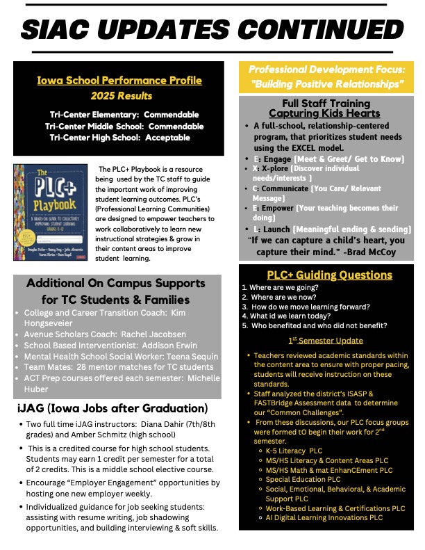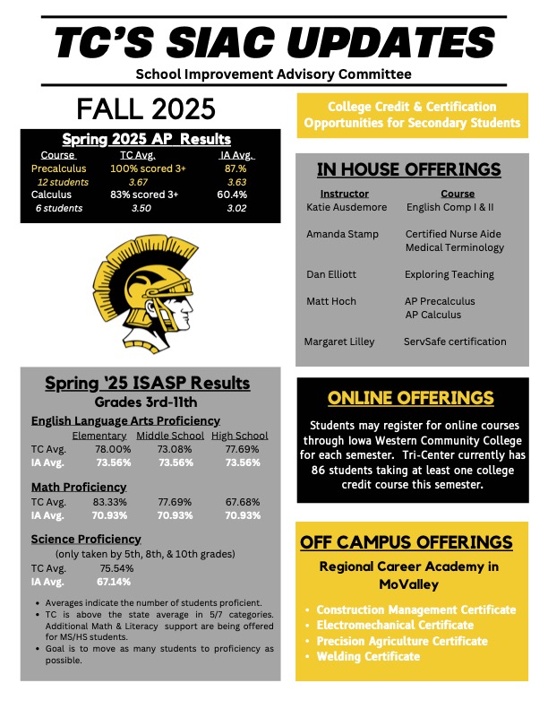 Tri-Center offers our students many opportunities! AP courses, online offerings, industry certifications and certificates, career preparation, and more!